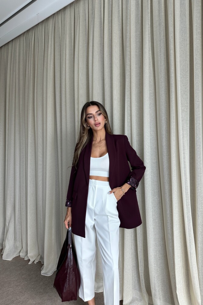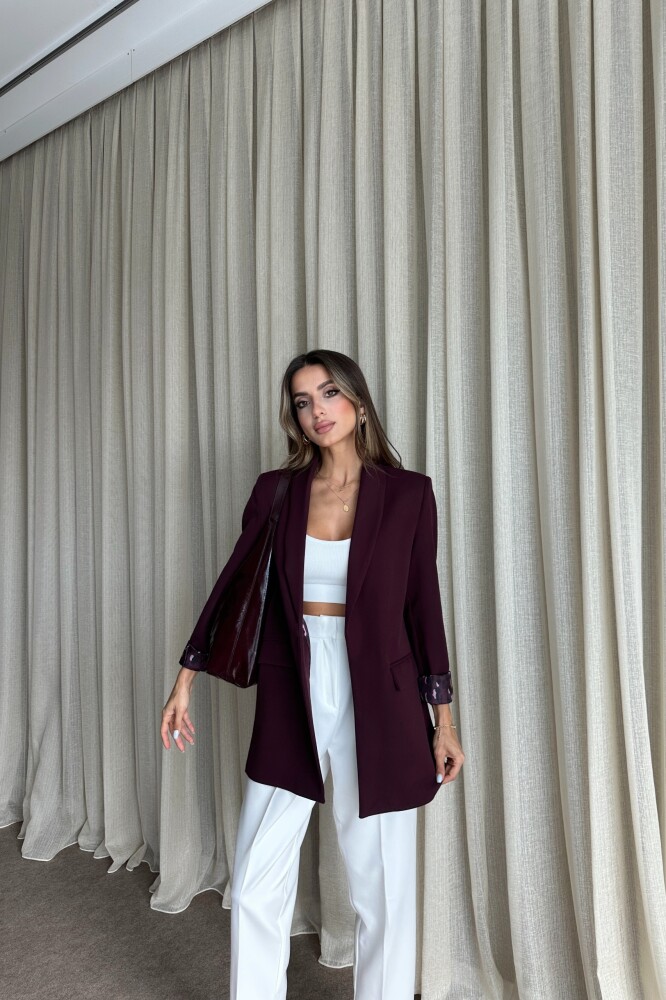 Blazer Astarlı Uzun Ceket - Mürdüm