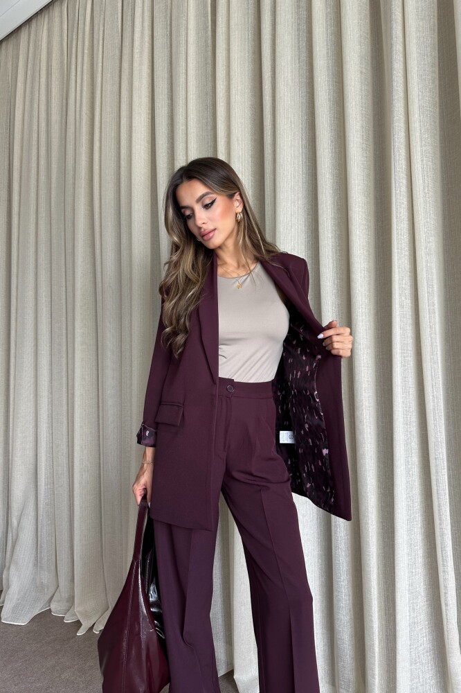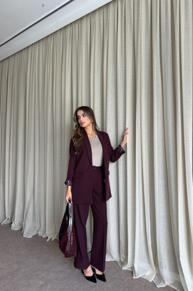 Blazer Ceket Palazzo Pantolon Takım - Mürdüm