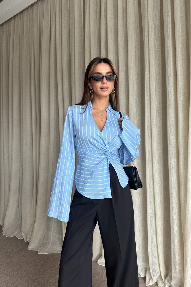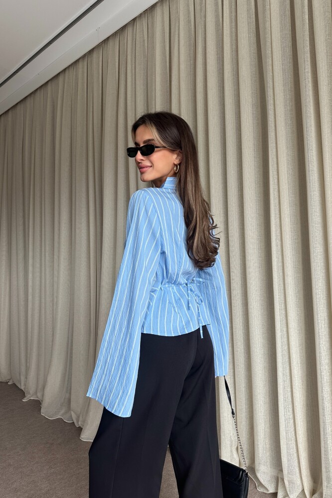 Çizgili Arkadan Bağlamalı Gömlek - Bebe Mavi