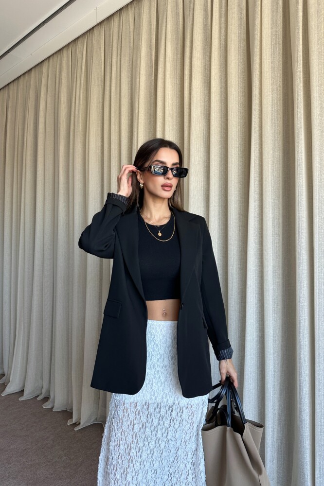 Düğmeli Astarlı Blazer Ceket - Siyah