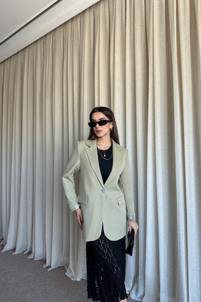 Düğmeli Astarlı Blazer Ceket - Yağ Yeşil