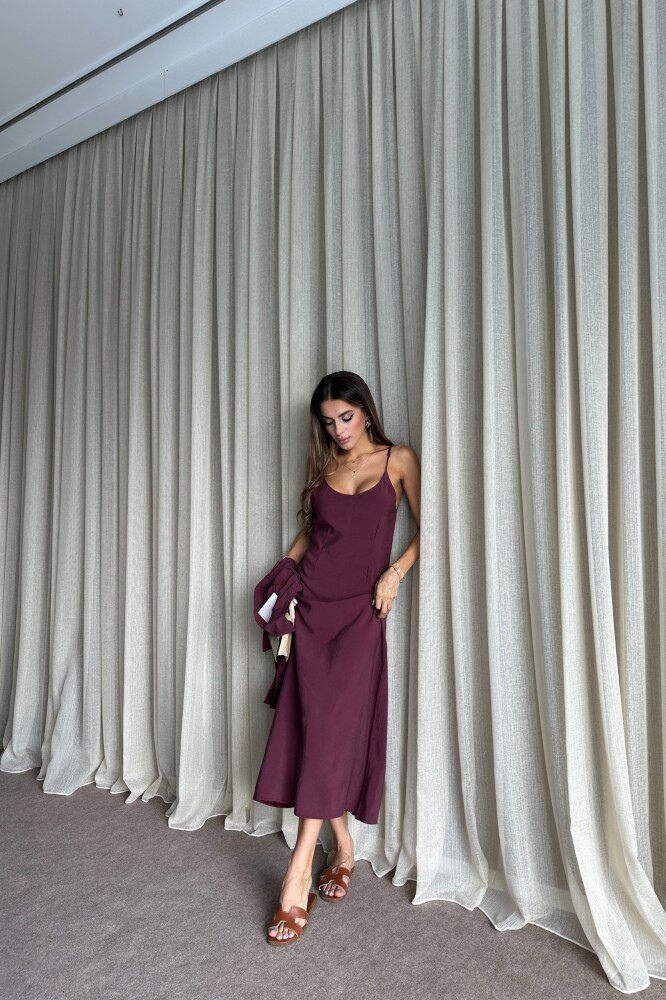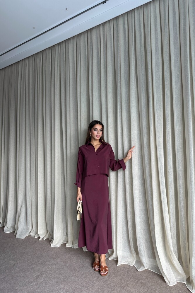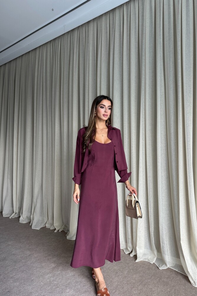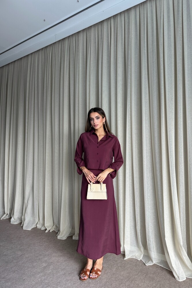 İp Askılı Elbise Gömlek İkili Takım - Mürdüm
