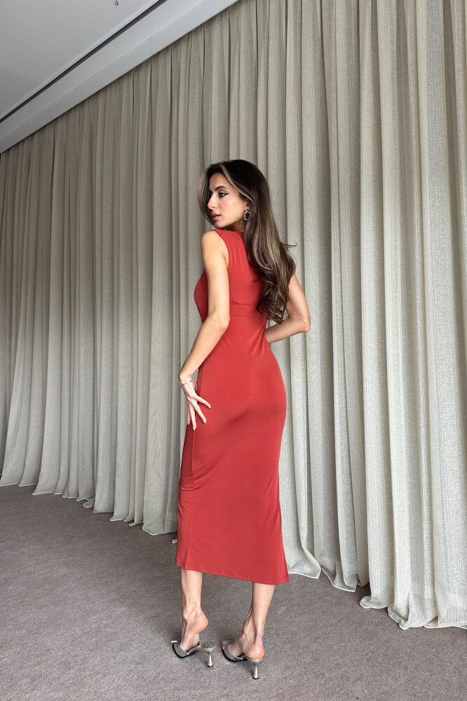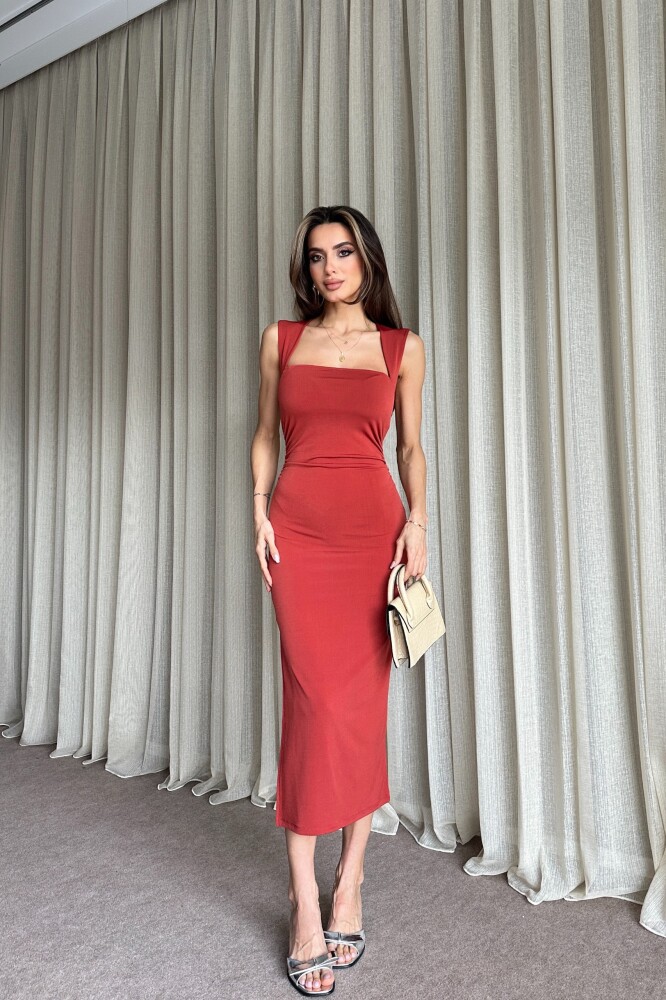 Kare yaka, büzgülü, yırtmaçlı, kolsuz.