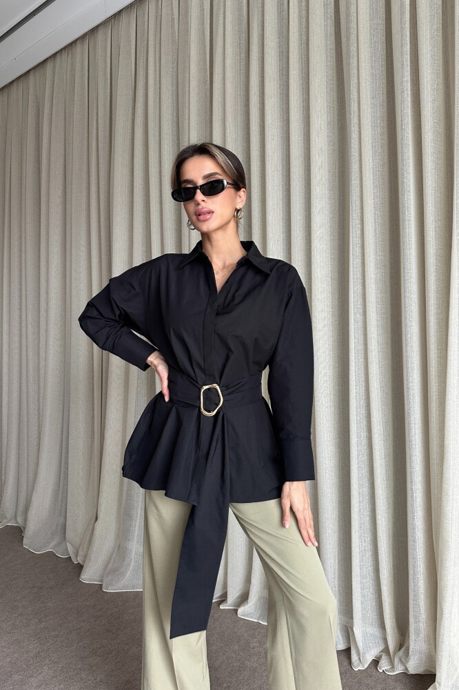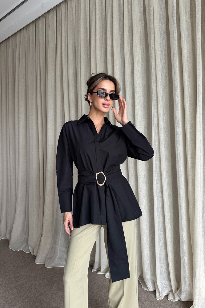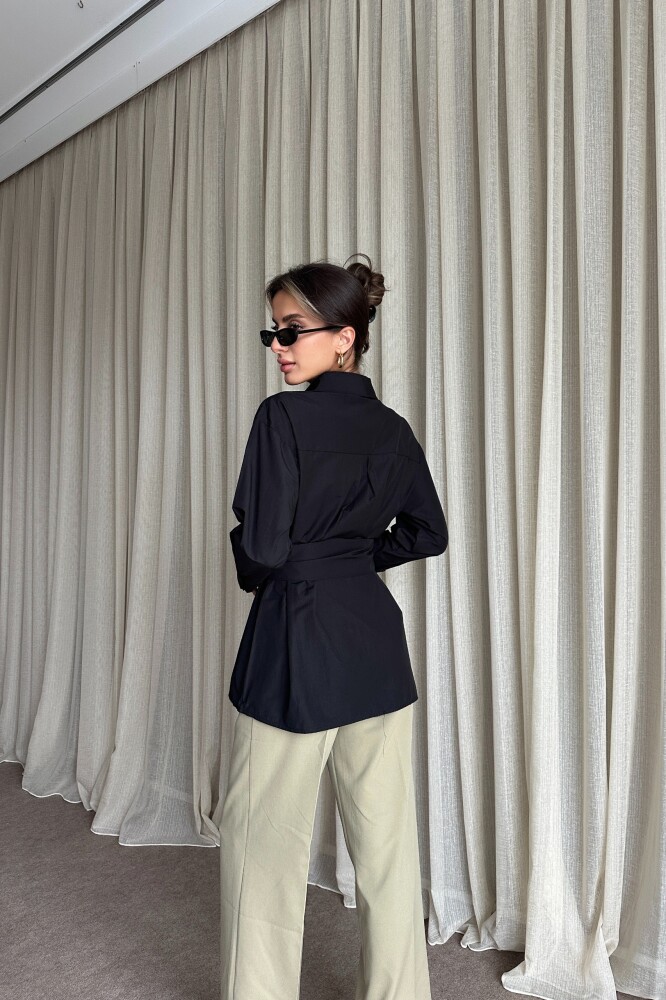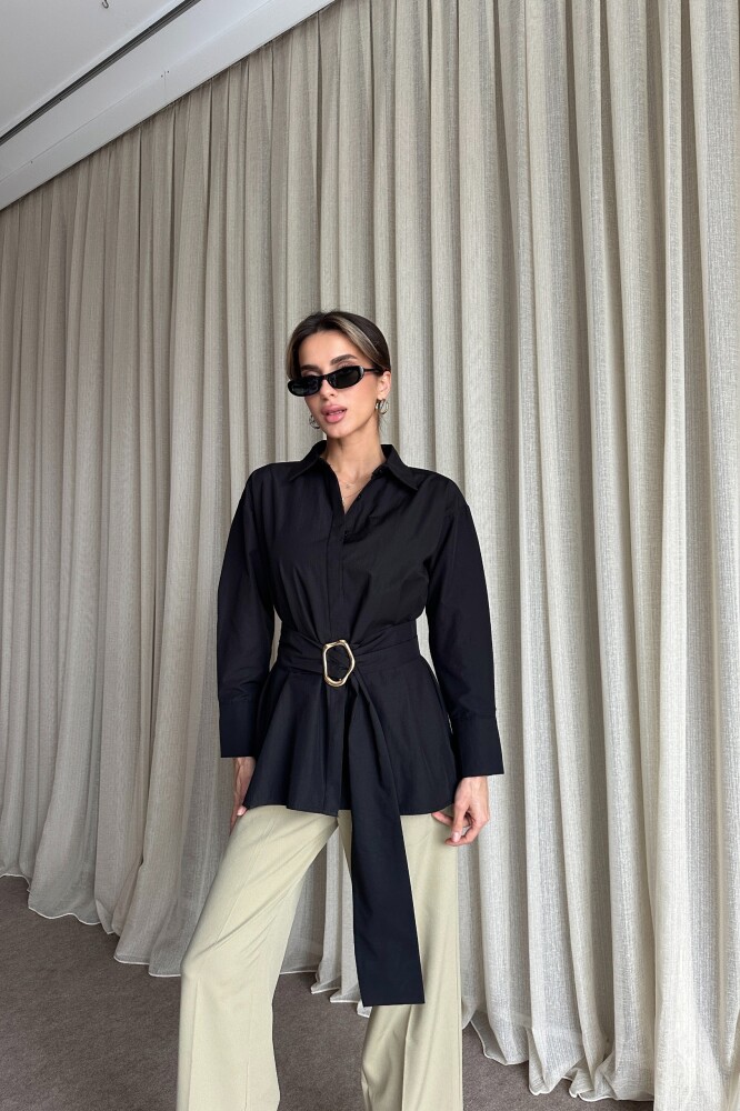 Kuşaklı Uzun Gömlek - Siyah