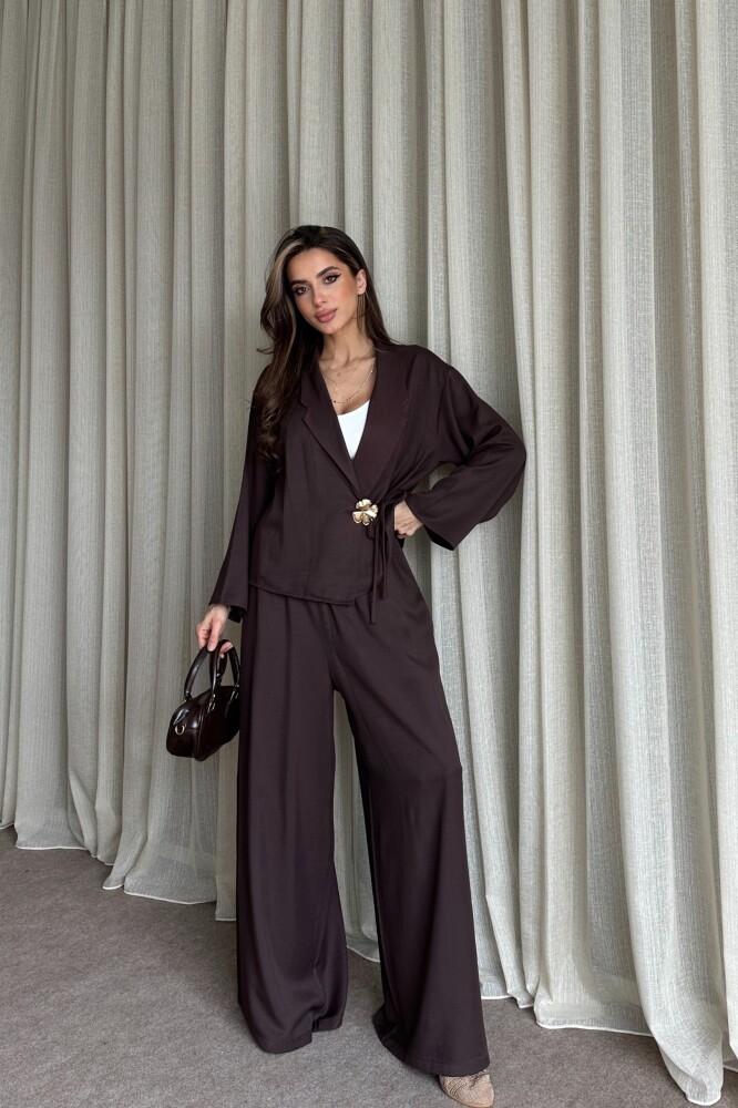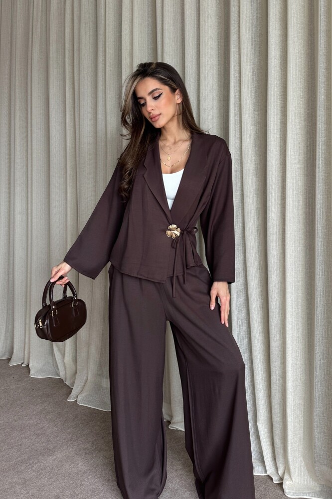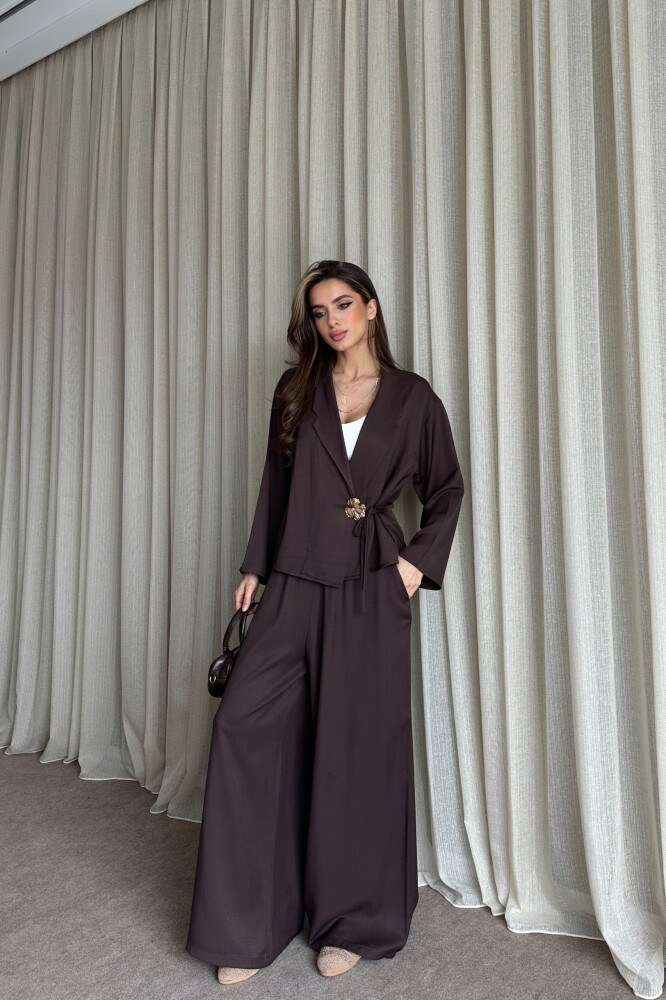 Toka Detaylı Yandan Bağlamalı Salaş Takım - Kahve