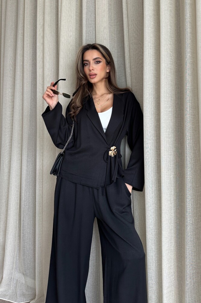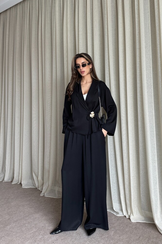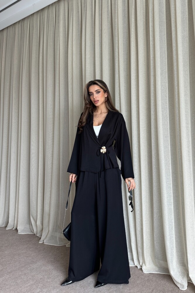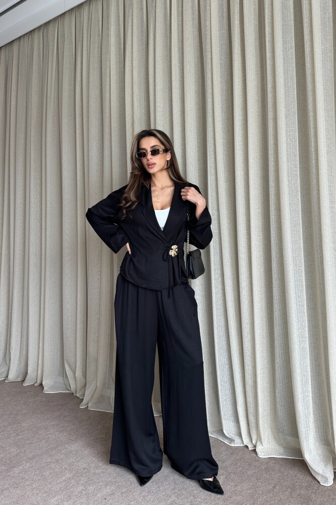 Toka Detaylı Yandan Bağlamalı Salaş Takım - Siyah